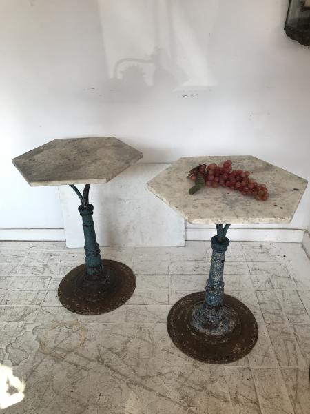PAIRE D´GUERIDON. FRANCE. FER ET MARBRE. 54x47x70 CMS
