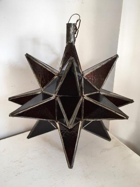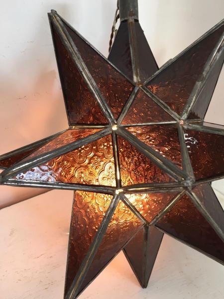 LUSTRE ÉTOILE. MAROC. FER ET CRISTAL PRESSÉ. 48 CMS DIAMÈTRE.