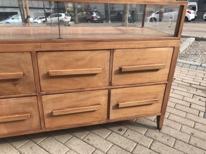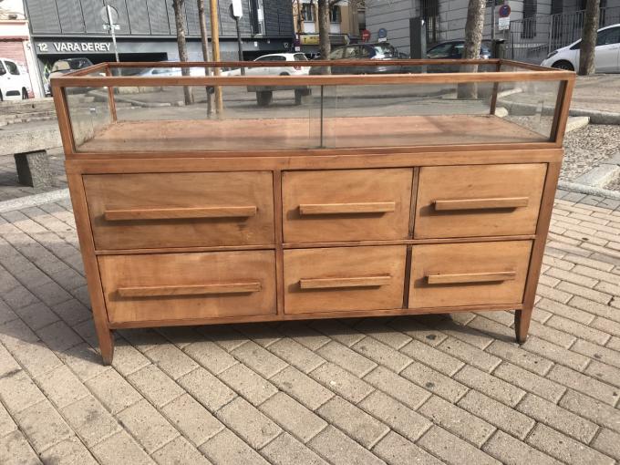 COMMODE AVEC VITRINE. 60'S. 140x50x90 CMS