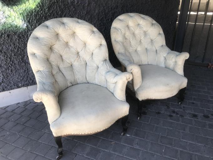 PAIRE D' FAUTEUILS CAPITONNÉ. SIÉCLE XIX. FRANCE. 82X70X98 CMS