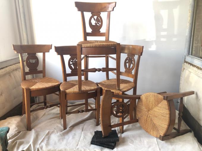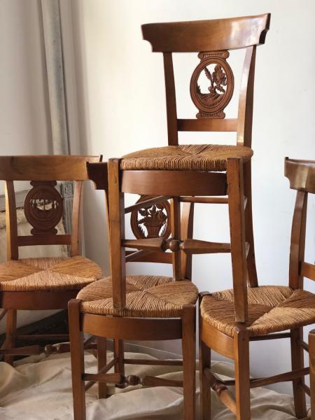 4 CHAISES. SIÉCLE XIX. FRANCE. CERISIER ET JONC. 40X38X86 CMS