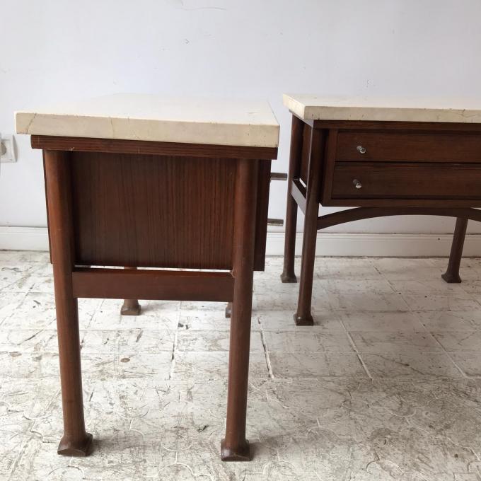 PAIRE DE CHEVETS. 60´S. BOIS ET MARBRE. 60X35X55 CMS