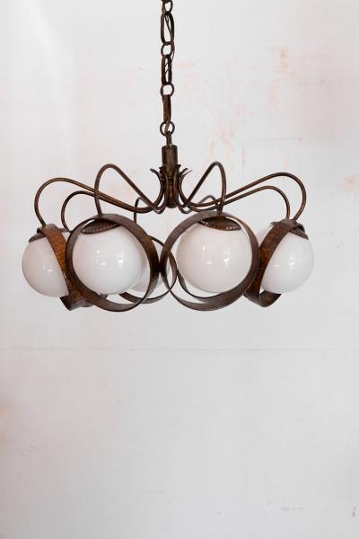LUSTRE. 70'S. FER ET OPALINE. 60X45 CMS
