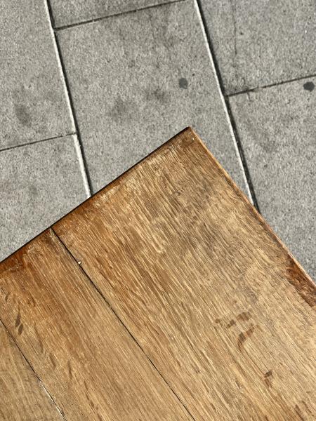TABLE BISTROT. ANNÉES 40. FRANCE. CHÊNE ET NOYER. 130X58X75 CMS