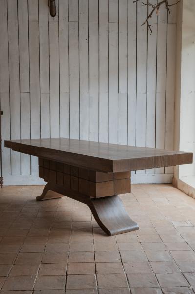 TOMASO BUZZI TABLE. ANNÉES 60. ITALIE. CHÊNE. 240X84X74 CMS
