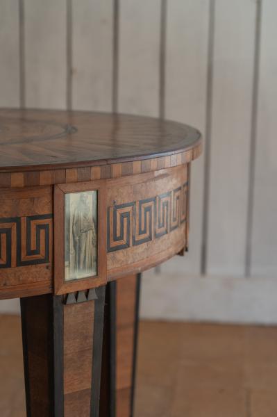 TABLE. ANNÉES 40. FRANCE. MARQUETERIE. 75X79 CMS