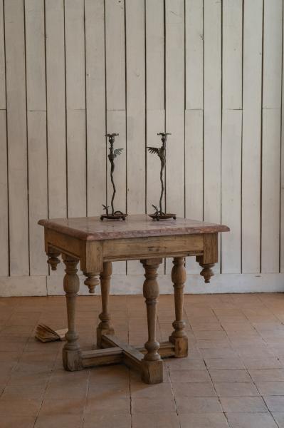 TABLE. XIX ÈME. FRANCE. CHÊNE ET MARBRE. 82X73X75 CMS