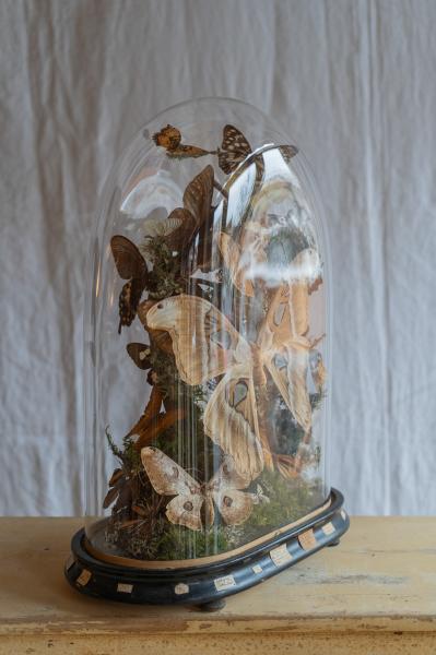 CLOCHE DE VERRE. XIX ÈME. FRANCE. VERRE ET BOIS. 35X19X45 CMS