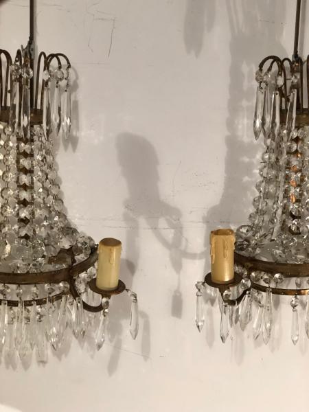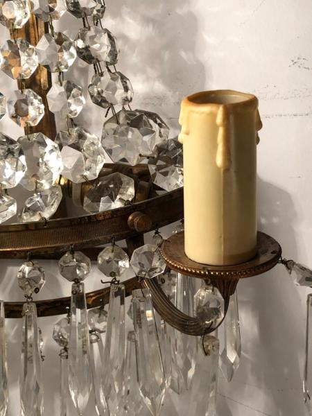 PAIRE D´APPLIQUES. FRANCE. LAITON ET CRISTAL. 27X14X37 CMS