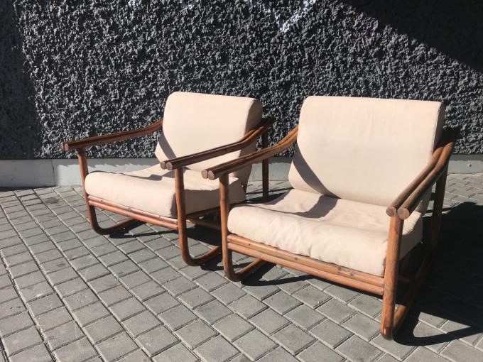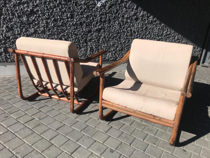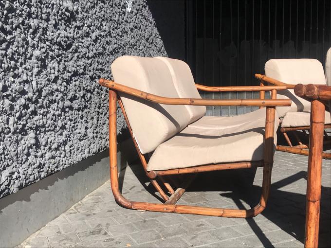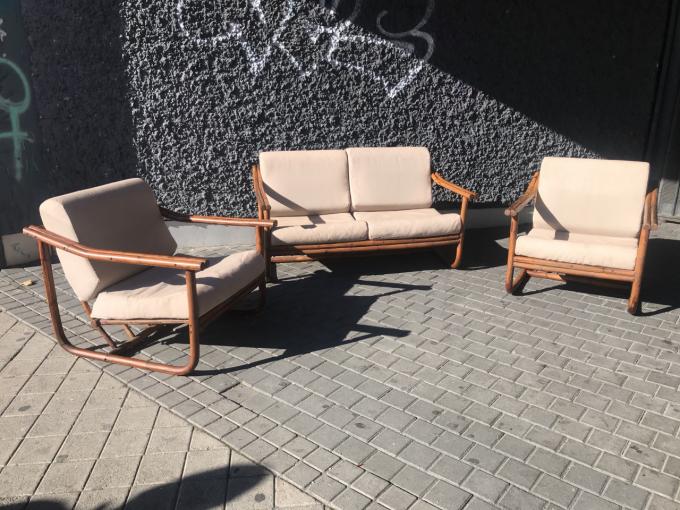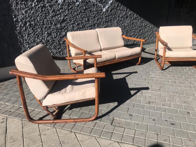 GROUPE DE FAUTEUIL ET SOFÁ. 70´S. FRANCE. BAMBOU. 73X86X74 CMS / 133X86X74 CMS