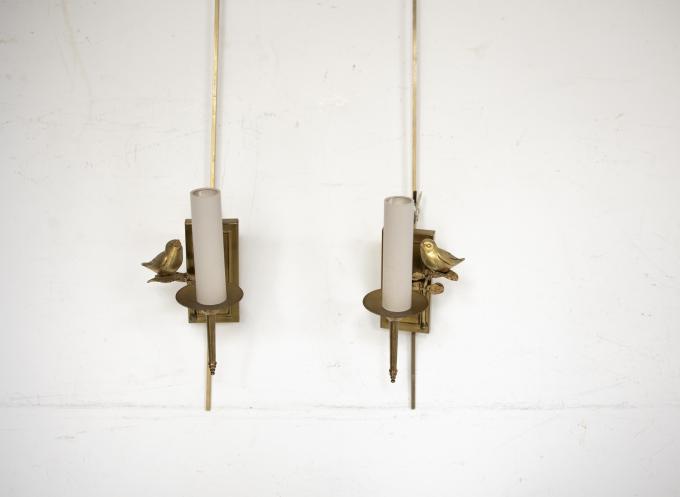 PAIRE DES APPLIQUES. ANNÉES 50. FRANCE. LAITON. 9X11X16 CMS