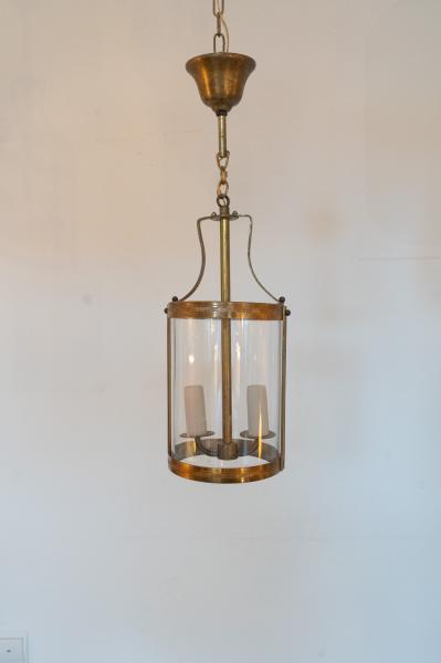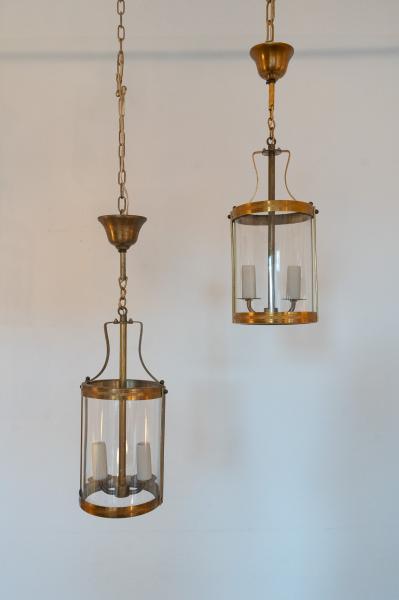 PAIRE DES LANTERNES. ANNÉES 60. FRANCE. LAITON ET CRISTAL. 15X50 CMS