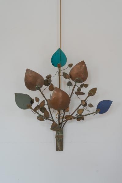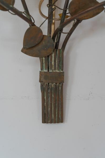 PAIRE DES APPLIQUES. FRANCE. CUIVRE ET VERRE. 39X9X45 CMS