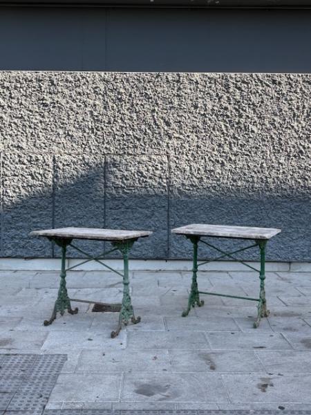 PAIRE DES TABLES. XIX ÈME. FRANCE. FER ET MARBRE. 83X57X76 CMS