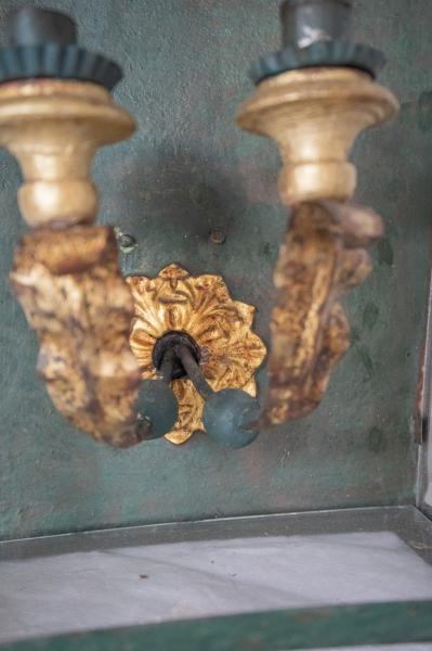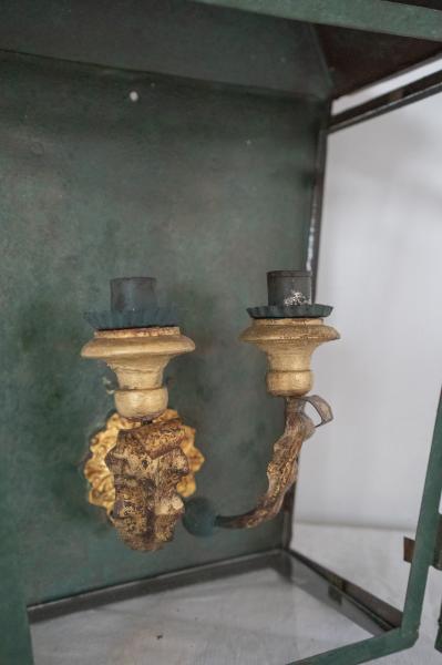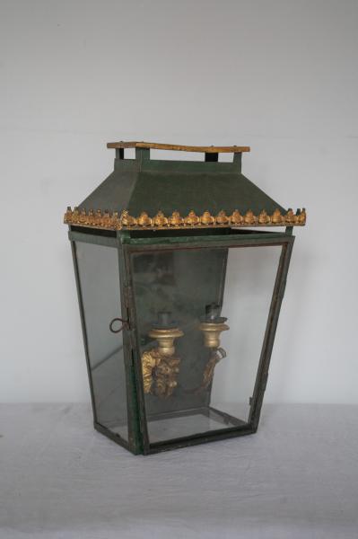 APPLIQUE LANTERNE. DÉBUT XX ÈME. FRANCE. FER ET VERRE. 34X20X48 CMS
