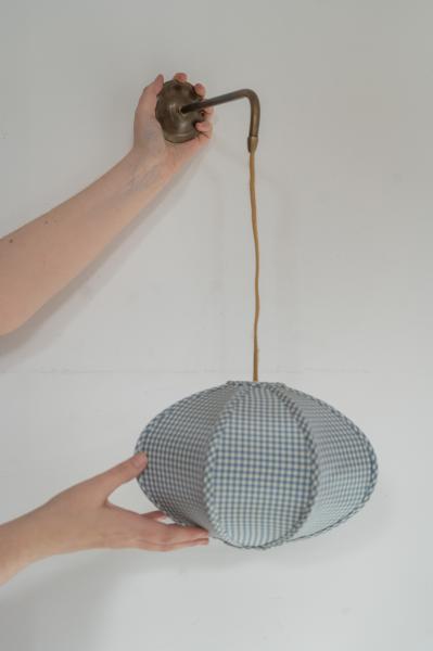 APPLIQUE EN LAITON AVEC GLOBE PLAT EN SOIE. 25X23X55 CMS