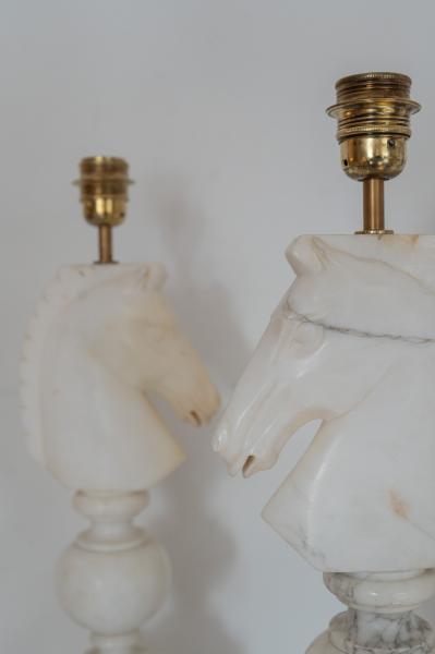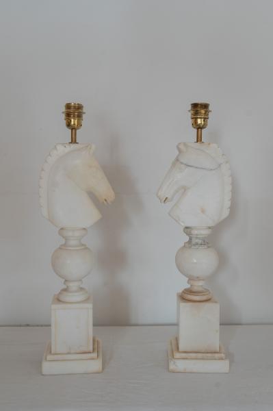 PAIRE DES LAMPES DE TABLE. ANNÉES 50. FRANCE. ALBÂTRE. 17X13X51 CMS