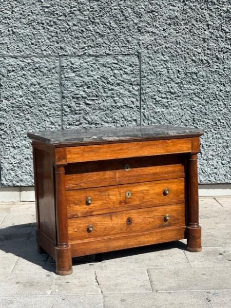 COMMODE. XIX ÈME. FRANCE. NOYER ET MARBRE. 114X59X90 CMS